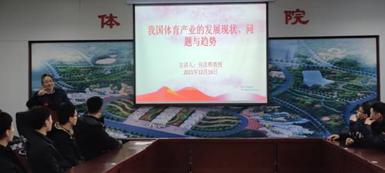 2021年12月16日,谈球吧何彦辉教授在体育馆201教室为老员工作了题目为《我国体育产业的发展现状、问题与趋势》的专题报告会。